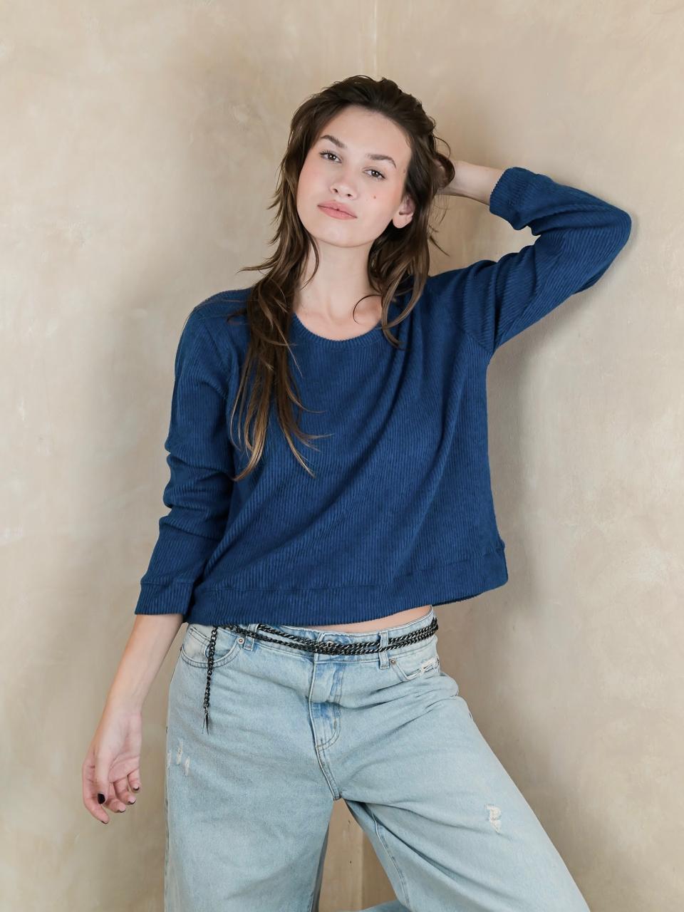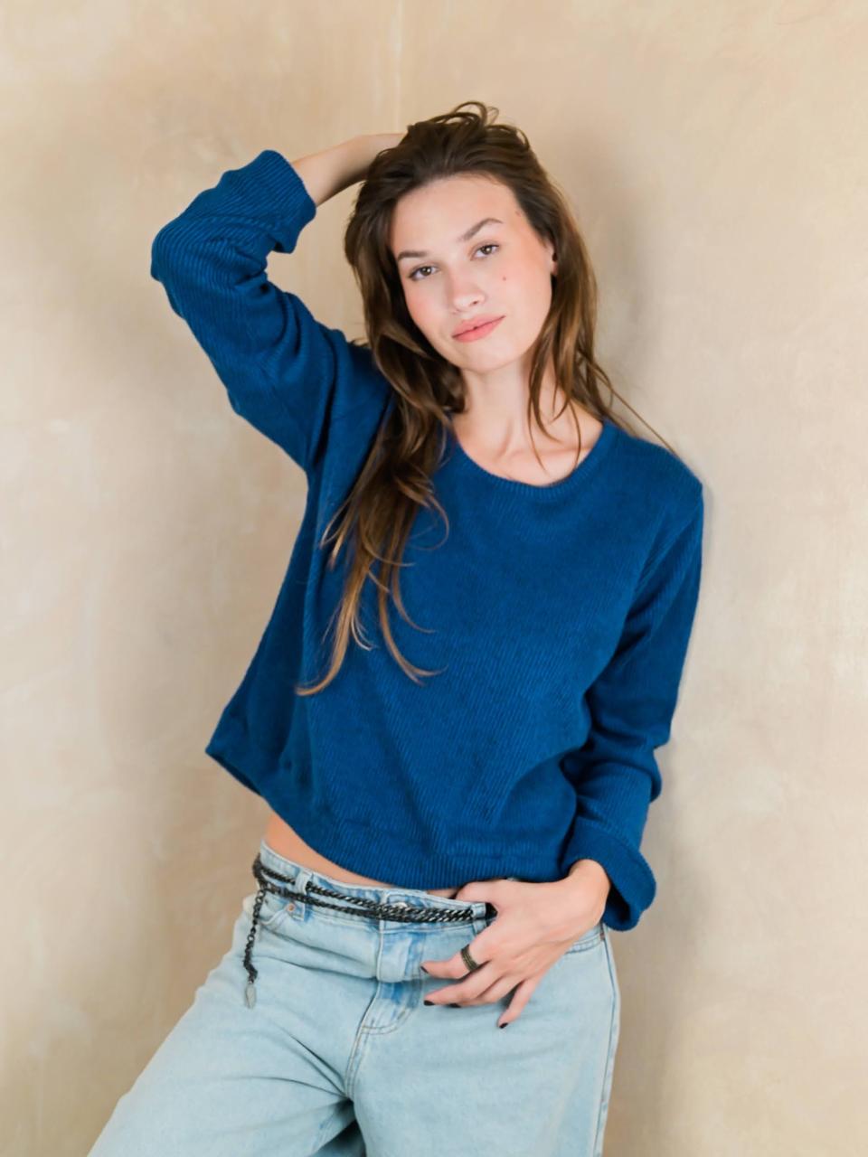 Bucito de lanilla Morley, cuello redondo con puños.