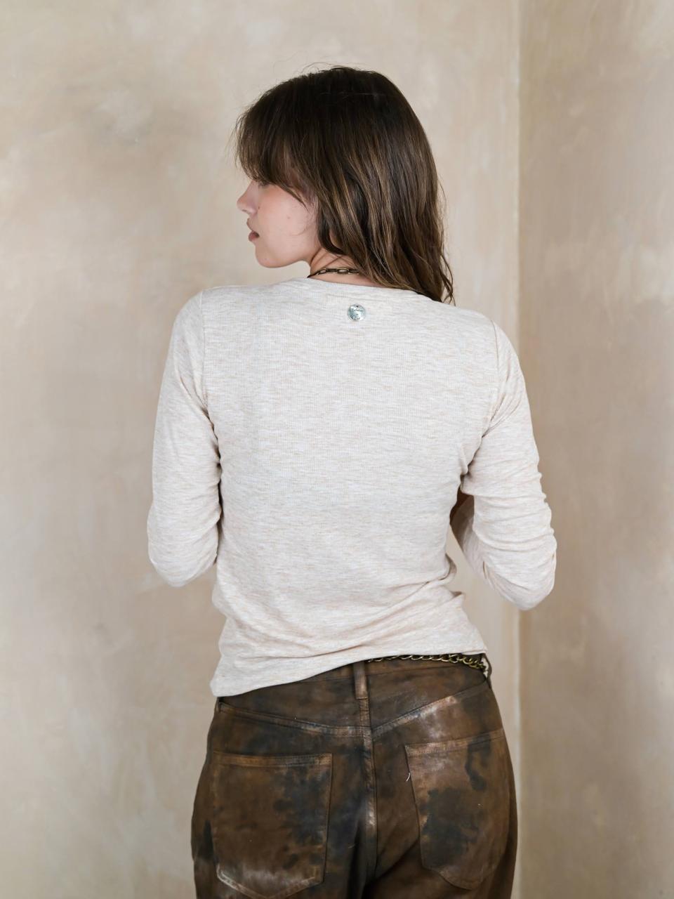 Reme corte entallado, escote redondo, manga larga, "SIN RUEDOS"