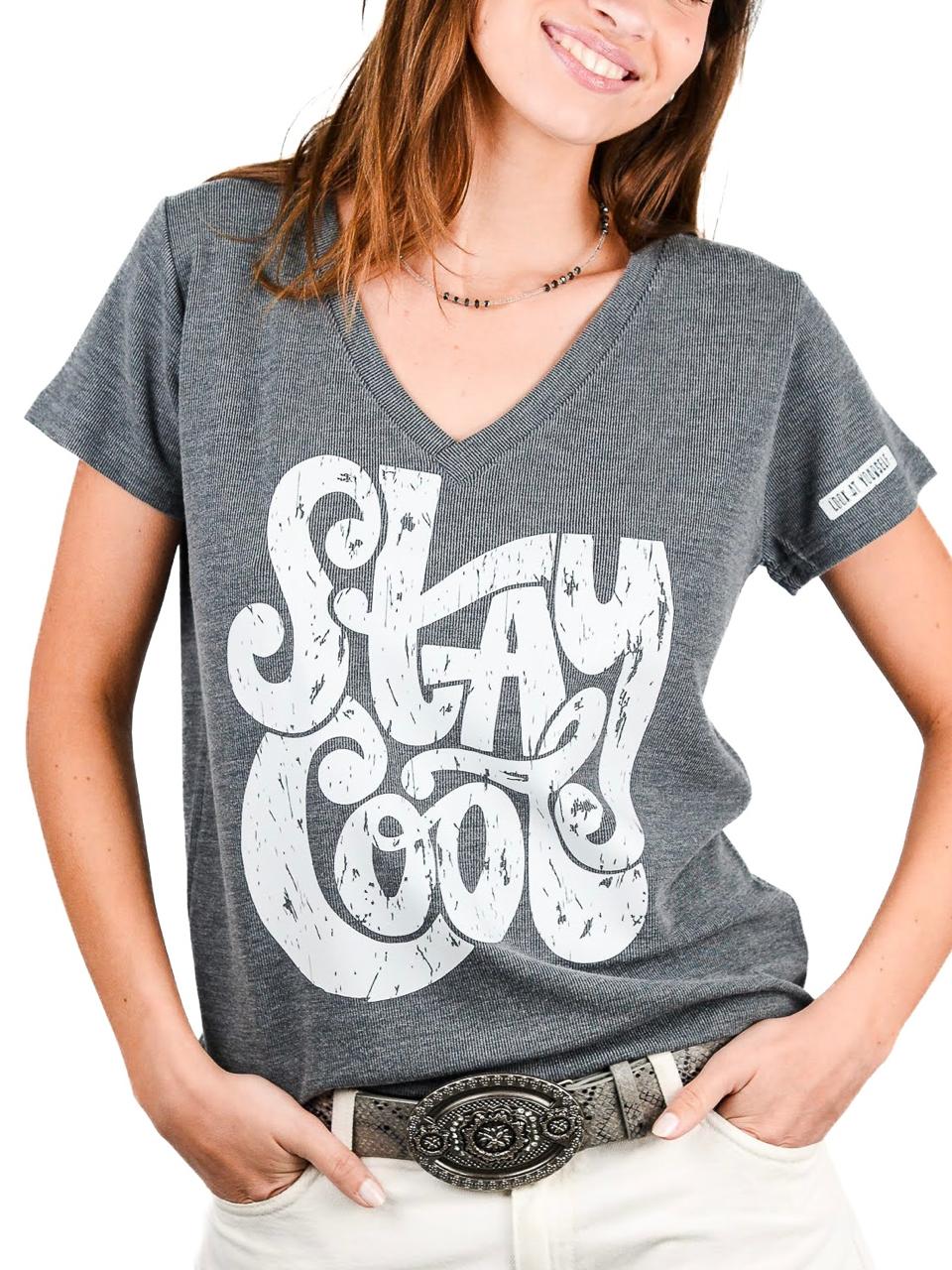 Reme corte basico, escote en V, manga corta. Confeccionada en morley vintage.